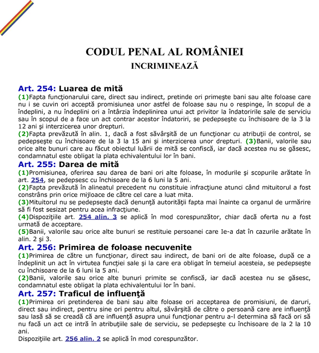 CODUL PENAL AL ROMÂNIEI INCRIMINEAZĂ